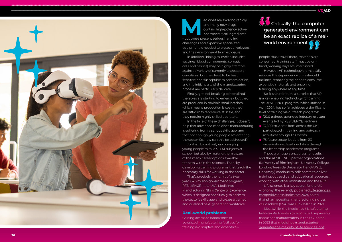 To start, by not only encouraging young people to take STEM subjects at school, but also by making them aware of the many career options available to them within the sciences. Then, by developing training programs that teach the necessary skills for working in the sector. That’ s precisely the remit of a twoyear, £ 4.5 million government program, RESILIENCE – the UK’ s Medicines Manufacturing Skills Centre of Excellence, which is designed specifically to address the sector’ s skills gap and create a trained and qualified next-generation workforce.