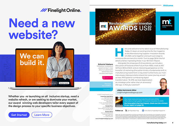 Hello and welcome to the latest issue of Manufacturing Today. It’ s been an exciting time for the magazine as the Manufacturing Supplier Innovation Awards US 2025 came together and such a privilege to announce the winners this month. Turn to page 38 for the full details and be inspired by those in our Winners’ Report.