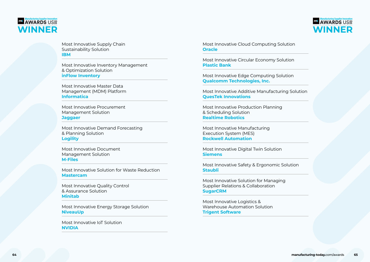 Most Innovative Logistics & Warehouse Automation Solution Trigent Software manufacturing-today. com / awards 65