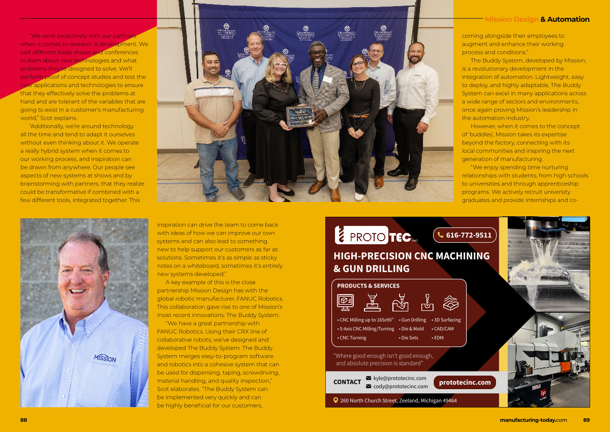 A key example of this is the close partnership Mission Design has with the global robotic manufacturer, FANUC Robotics. This collaboration gave rise to one of Mission’ s most recent innovations: The Buddy System.