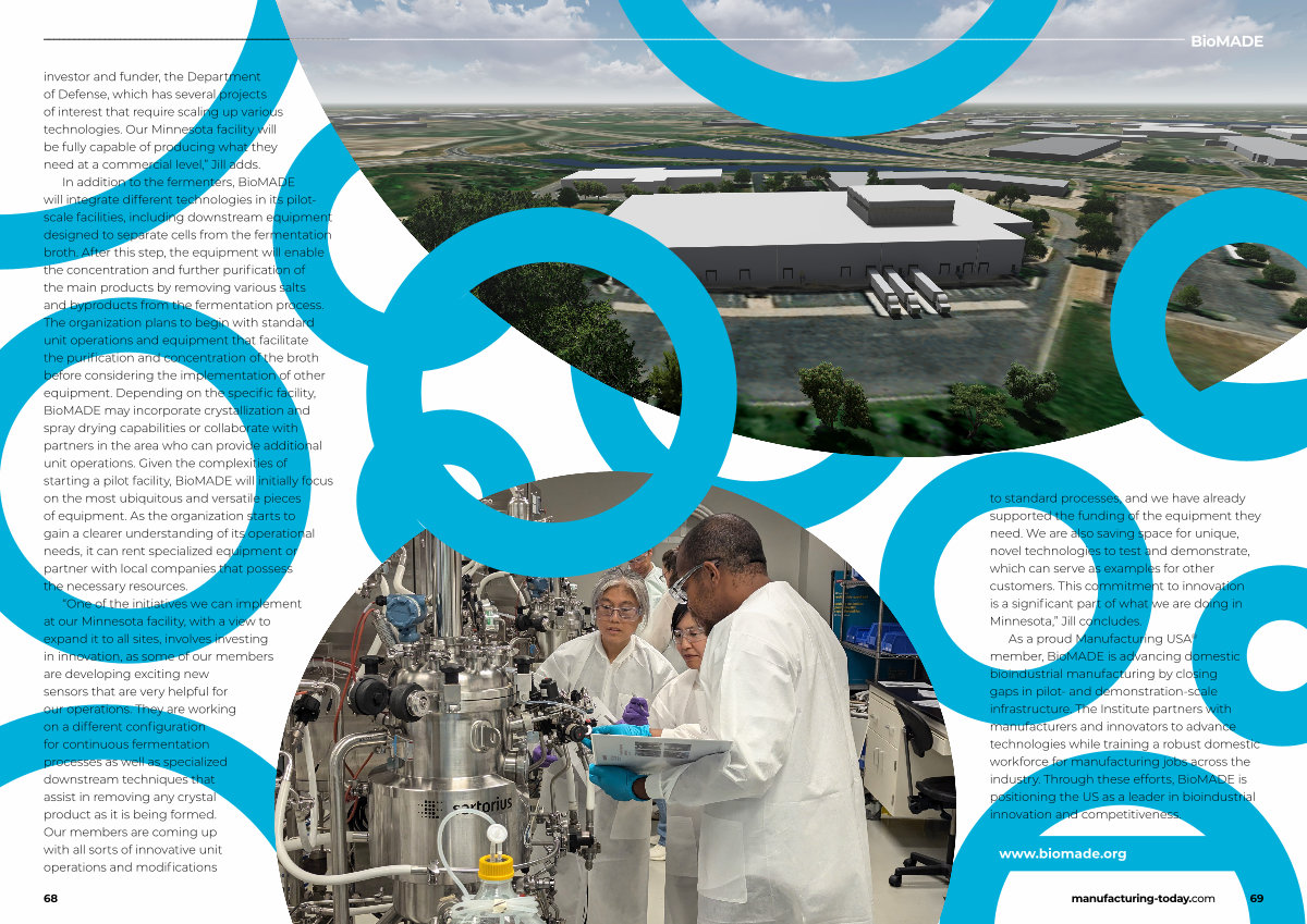 In addition to the fermenters, BioMADE will integrate different technologies in its pilotscale facilities, including downstream equipment designed to separate cells from the fermentation broth. After this step, the equipment will enable the concentration and further purification of the main products by removing various salts and byproducts from the fermentation process. The organization plans to begin with standard unit operations and equipment that facilitate the purification and concentration of the broth before considering the implementation of other equipment. Depending on the specific facility, BioMADE may incorporate crystallization and spray drying capabilities or collaborate with partners in the area who can provide additional unit operations. Given the complexities of starting a pilot facility, BioMADE will initially focus on the most ubiquitous and versatile pieces of equipment. As the organization starts to gain a clearer understanding of its operational needs, it can rent specialized equipment or partner with local companies that possess the necessary resources.