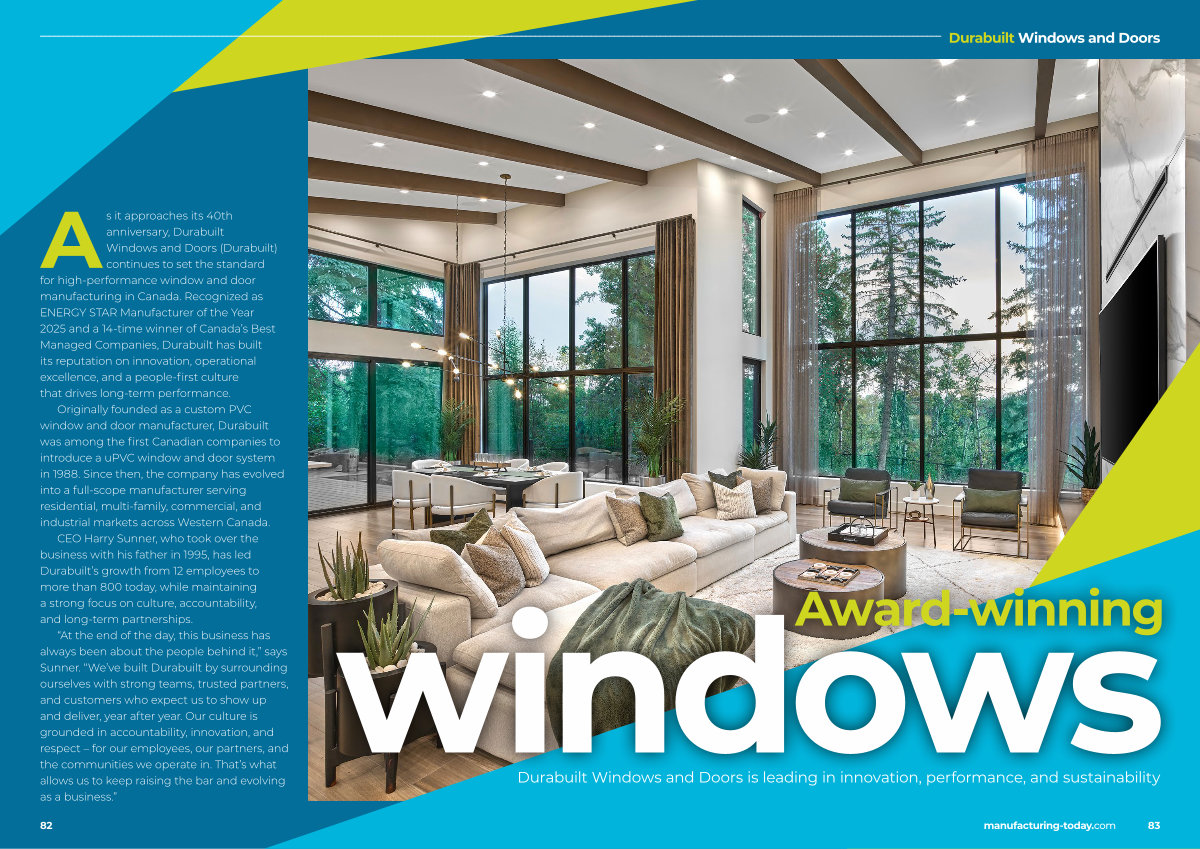 As it approaches its 40th anniversary, Durabuilt Windows and Doors( Durabuilt) continues to set the standard for high-performance window and door manufacturing in Canada. Recognized as ENERGY STAR Manufacturer of the Year 2025 and a 14-time winner of Canada’ s Best Managed Companies, Durabuilt has built its reputation on innovation, operational excellence, and a people-first culture that drives long-term performance.
