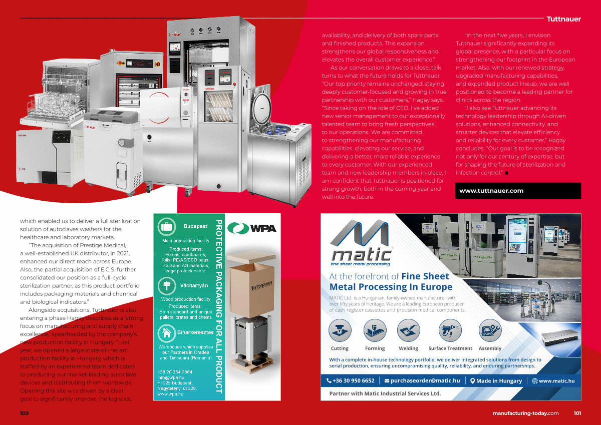 “ I also see Tuttnauer advancing its technology leadership through AI-driven solutions, enhanced connectivity, and smarter devices that elevate efficiency and reliability for every customer,” Hagay concludes.“ Our goal is to be recognized not only for our century of expertise, but for shaping the future of sterilization and infection control.” ■