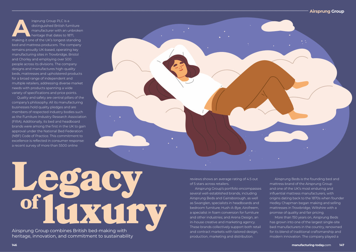 More than 150 years on, Airsprung Beds has grown into one of the largest single-site bed manufacturers in the country, renowned for its blend of traditional craftsmanship and modern innovation. The company played a