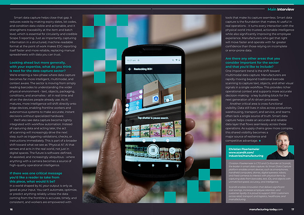 Are there any other areas that you consider important for the sector and that you’ d like to include? One important trend is the shift toward multimodal data capture. Manufacturers are rapidly moving beyond traditional barcode scanning to capture text, objects, and other visual signals in a single workflow. This provides richer operational context and supports more accurate decision-making- a key building block for the next generation of AI-driven processes.