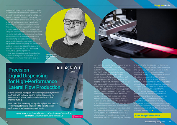 amount of interest during what we consider to be the first phase of our US operations. At present, we are in phase two and are looking forward to phases three and four. As we expand our team and take on more projects at our US facility, we are also investing in expanding our manufacturing capabilities. This enhancement includes the installation of high-grade manufacturing facilities with stringent environmental controls in place, low humidity( below 20 percent relative humidity), and temperature and humidity regulation for dispensing processes. By incorporating automated dispensing and assembly equipment, we not only keep our costs down but also enhance our appeal to customers who want to partner with us,” adds Mark Jones, Chief Operating Officer.