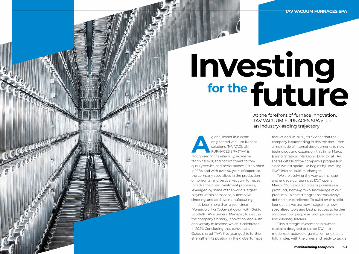 It’ s been more than a year since Manufacturing Today sat down with Guido Locatelli, TAV’ s General Manager, to discuss the company’ s history, innovation, and 40th anniversary milestone, which it celebrated in 2024. Concluding that conversation, Guido shared TAV’ s five-year goal to further strengthen its position in the global furnace