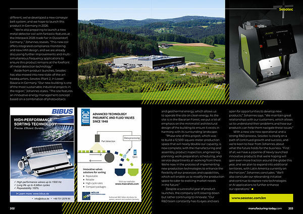 With a new site now operational and a strong R & D process, Sesotec is clearly on a path of continued growth and success, and we’ re keen to hear from Johannes about what the future holds for the business.“ First of all, we have a pipeline of newly launched innovative products that we’ re hoping will gain even more traction around the globe this year, and we plan to expand into additional territories, with Latin America currently on the horizon,” Johannes concludes.“ We’ ll also conclude our rebranding initiative and continue to explore new technologies or AI applications to further enhance our operations.” ■