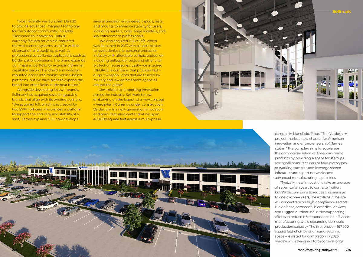 “ Typically, new innovations take an average of seven-to-ten years to come to fruition, but Verdexium aims to reduce this average to one-to-three years,” he explains.“ The site will concentrate on high-compliance sectors like defense, aerospace, biomedical devices, and rugged outdoor industries supporting efforts to reduce US dependence on offshore manufacturing while expanding domestic production capacity. The first phase – 167,500 square feet of office and manufacturing space – is slated for completion in 2026. Verdexium is designed to become a longmanufacturing-today. com 225
