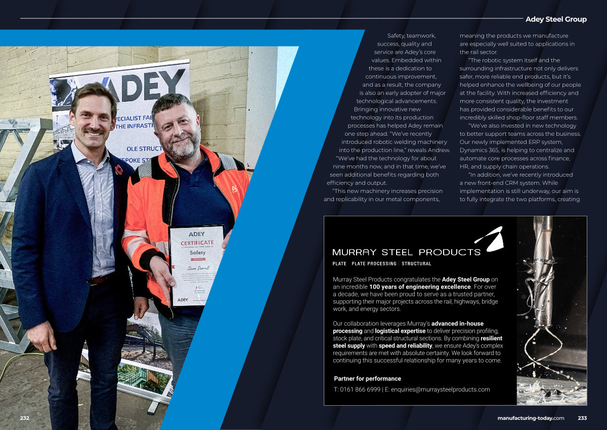 Partner for performance T: 0161 866 6999 | E: enquiries @ murraysteelproducts. com manufacturing-today. com 233