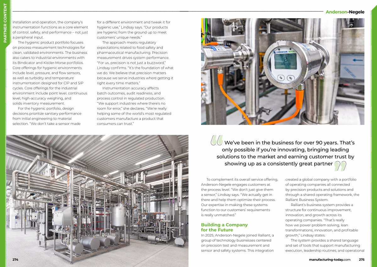 In 2025, Anderson-Negele joined Ralliant, a group of technology businesses centered on precision test and measurement and sensor and safety systems. This integration created a global company with a portfolio of operating companies all connected by precision products and solutions and through a shared operating framework, the Ralliant Business System.
