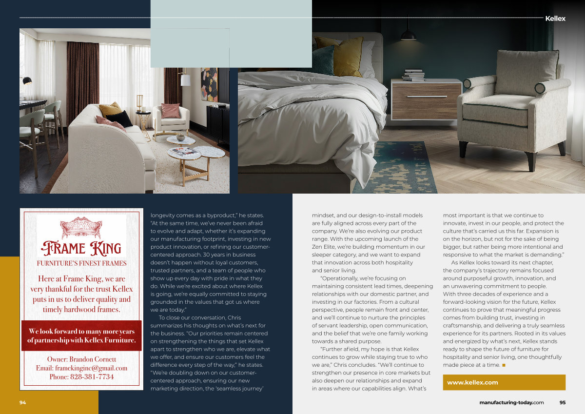 As Kellex looks toward its next chapter, the company’ s trajectory remains focused around purposeful growth, innovation, and an unwavering commitment to people. With three decades of experience and a forward-looking vision for the future, Kellex continues to prove that meaningful progress comes from building trust, investing in craftsmanship, and delivering a truly seamless experience for its partners. Rooted in its values and energized by what’ s next, Kellex stands ready to shape the future of furniture for hospitality and senior living, one thoughtfully made piece at a time. ■