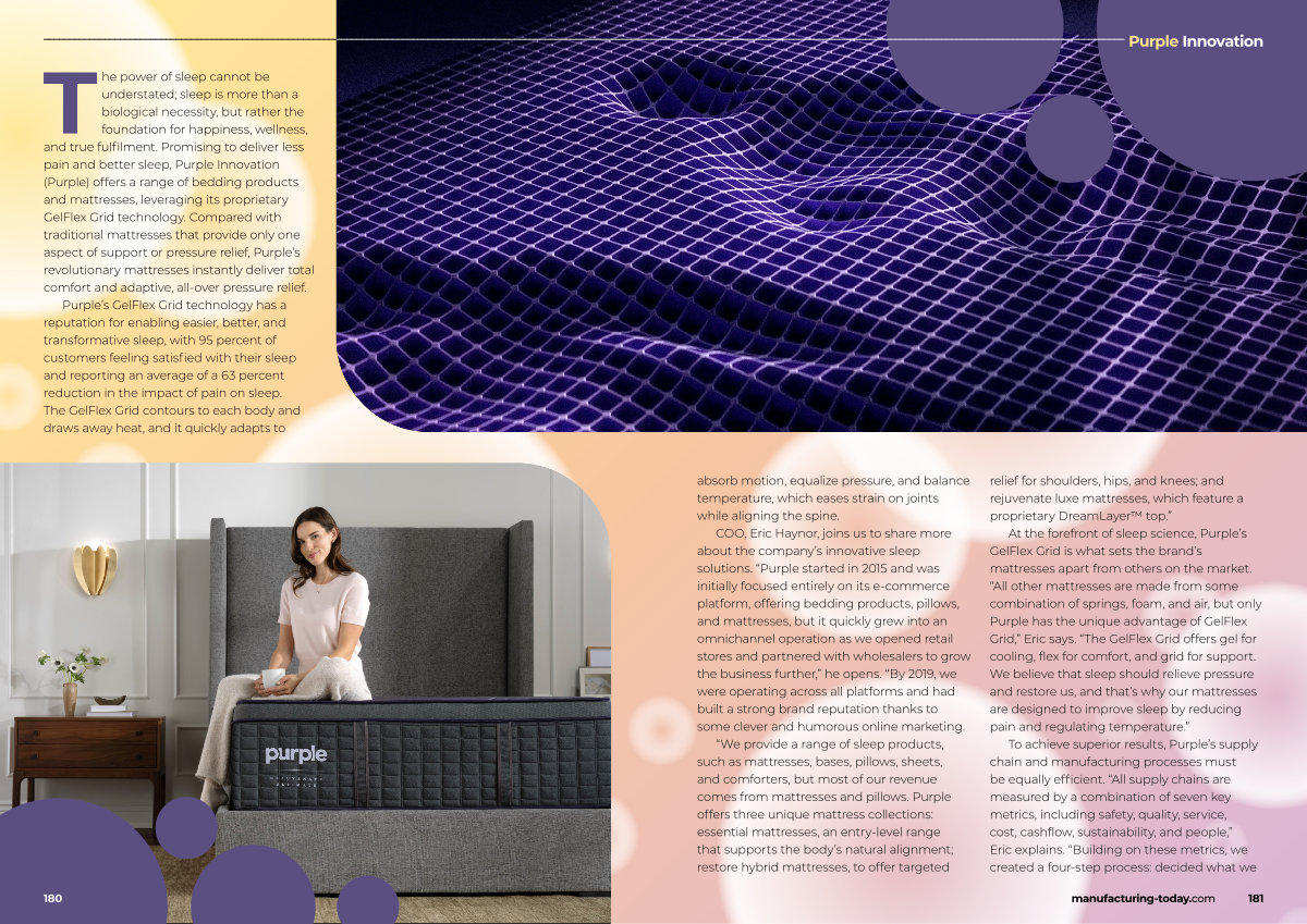 The power of sleep cannot be understated; sleep is more than a biological necessity, but rather the foundation for happiness, wellness, and true fulfilment. Promising to deliver less pain and better sleep, Purple Innovation( Purple) offers a range of bedding products and mattresses, leveraging its proprietary GelFlex Grid technology. Compared with traditional mattresses that provide only one aspect of support or pressure relief, Purple’ s revolutionary mattresses instantly deliver total comfort and adaptive, all-over pressure relief.