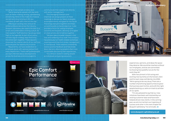 “ I’ m very pleased to say that our new initiatives have been well received by our existing customer base and have even helped attract new clients. In the coming year, we aim to maintain our trajectory of success and usher in the next chapter for Buoyant Upholstery,” he concludes. ■