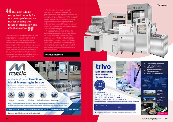 “ I also see Tuttnauer advancing its technology leadership through AI-driven solutions, enhanced connectivity, and smarter devices that elevate efficiency and reliability for every customer,” Hagay concludes.“ Our goal is to be recognized not only for our century of expertise, but for shaping the future of sterilization and infection control.” ■