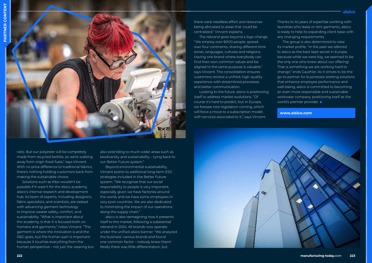 The group is also determined to raise its market profile.“ In the past we referred to alsico as the best kept secret in Europe, because while we were big, we seemed to be the only one who knew about our offering! That is something we are working hard to change,” ends Gauthier. As it strives to be the go-to partner for businesses seeking solutions that enhance employee performance and well-being, alsico is committed to becoming an even more responsible and sustainable workwear company, positioning itself as the world’ s premier provider. ■