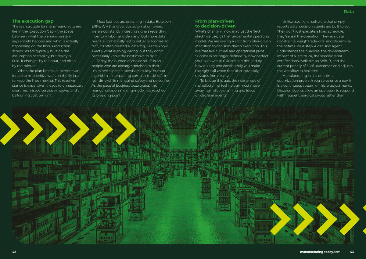 The real struggle for many manufacturers lies in the‘ Execution Gap’- the space between what the planning system says should happen and what is actually happening on the floor. Production schedules are typically built on the assumption of stability, but reality is fluid. It changes by the hour, and often by the minute.