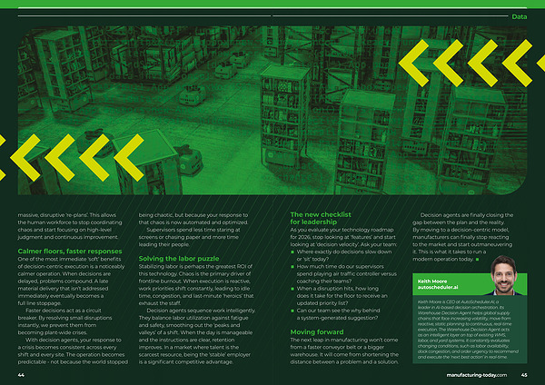 Decision agents sequence work intelligently. They balance labor utilization against fatigue and safety, smoothing out the‘ peaks and valleys’ of a shift. When the day is manageable and the instructions are clear, retention improves. In a market where talent is the scarcest resource, being the‘ stable’ employer is a significant competitive advantage.