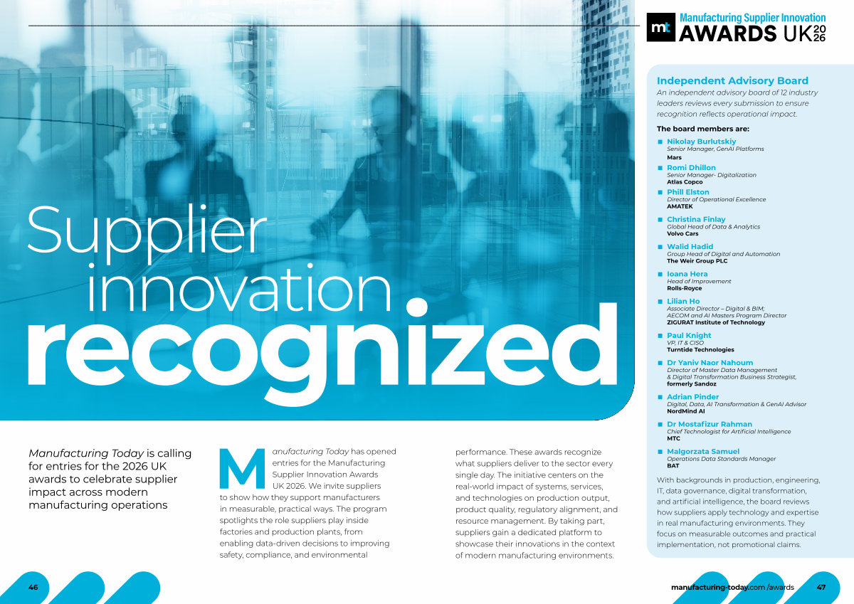 Manufacturing Today is calling for entries for the 2026 UK awards to celebrate supplier impact across modern manufacturing operations