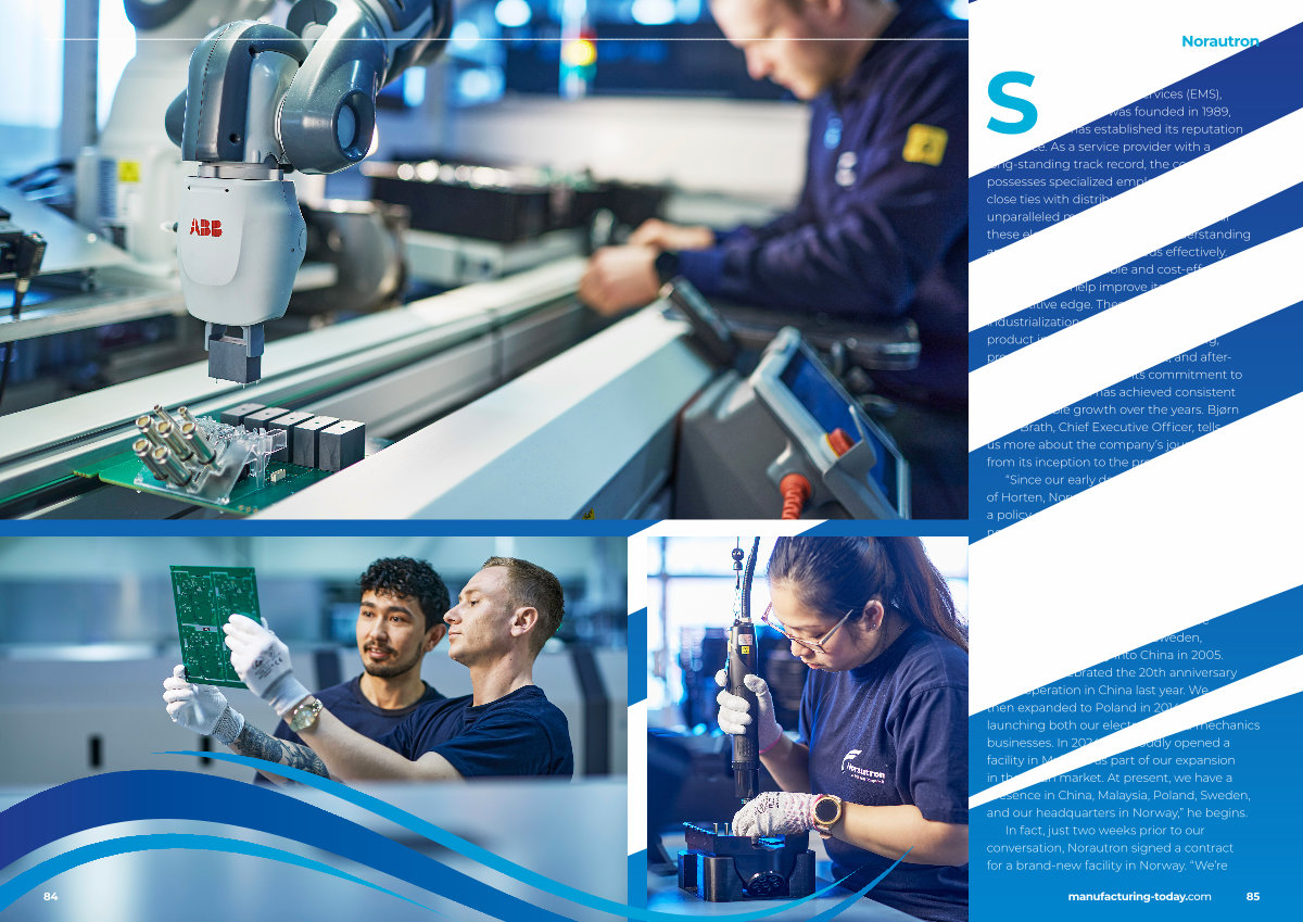 Specializing in electronic manufacturing services( EMS), Norautron was founded in 1989, and has established its reputation ever since. As a service provider with a long-standing track record, the company possesses specialized employee skills, close ties with distribution channels, and unparalleled manufacturing expertise. All these elements are crucial for understanding and meeting customer needs effectively. Norautron offers flexible and cost-effective solutions that help improve its customers’ competitive edge. These services include industrialization, manufacturing, new product introduction( NPI), prototyping, product lifecycle management, and aftersales support. Thanks to its commitment to quality, Norautron has achieved consistent and profitable growth over the years. Bjørn Einar Brath, Chief Executive Officer, tells us more about the company’ s journey from its inception to the present day.