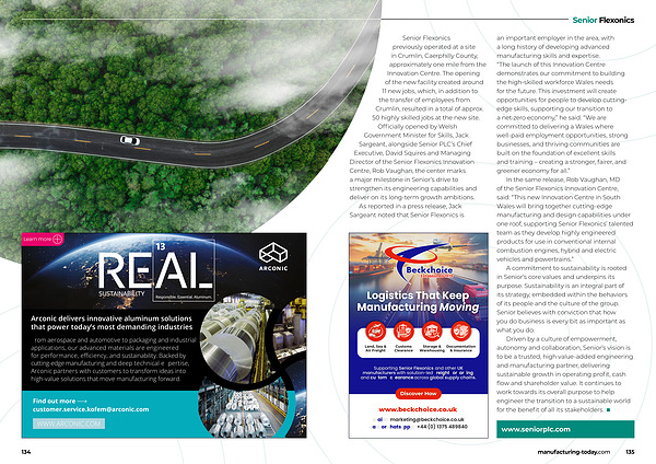 In the same release, Rob Vaughan, MD of the Senior Flexonics Innovation Centre, said:“ This new Innovation Centre in South Wales will bring together cutting-edge manufacturing and design capabilities under one roof, supporting Senior Flexonics’ talented team as they develop highly engineered products for use in conventional internal combustion engines, hybrid and electric vehicles and powertrains.”
