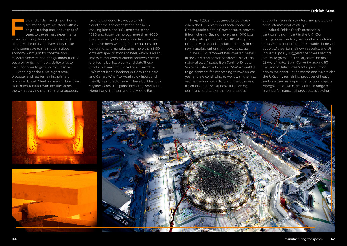 Standing as the UK’ s largest steel producer and last remaining primary producer, British Steel is a leading European steel manufacturer with facilities across the UK, supplying premium long products around the world. Headquartered in Scunthorpe, the organization has been making iron since 1864 and steel since 1890, and today it employs more than 4000 people – many of whom come from families that have been working for the business for generations. It manufactures more than 1450 different specifications of steel, which is rolled into wire rod, constructional sections, special profiles, rail, billet, bloom and slab. These products have contributed to some of the UK’ s most iconic landmarks, from The Shard and Canary Wharf to Heathrow Airport and the Olympic Stadium – and have built famous skylines across the globe including New York, Hong Kong, Istanbul and the Middle East.