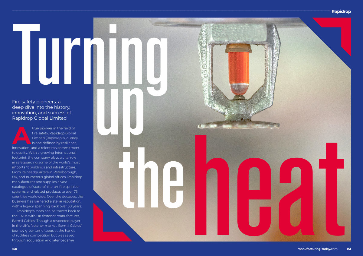 A true pioneer in the field of fire safety, Rapidrop Global Limited( Rapidrop)’ s journey is one defined by resilience, innovation, and a relentless commitment to quality. With a growing international footprint, the company plays a vital role in safeguarding some of the world’ s most important buildings and infrastructure. From its headquarters in Peterborough, UK, and numerous global offices, Rapidrop manufactures and supplies a vast catalogue of state-of-the-art fire sprinkler systems and related products to over 75 countries worldwide. Over the decades, the business has garnered a stellar reputation, with a legacy spanning back over 50 years.