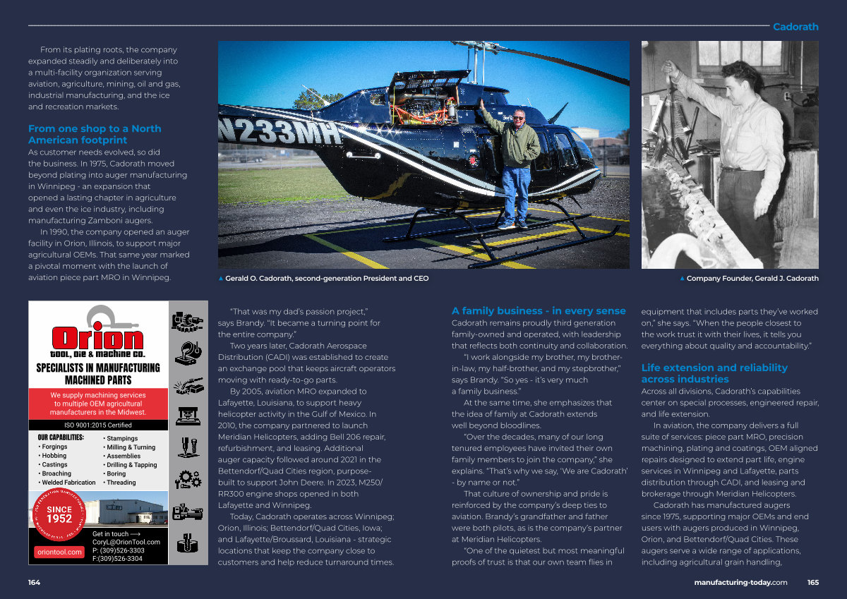 Today, Cadorath operates across Winnipeg; Orion, Illinois; Bettendorf / Quad Cities, Iowa; and Lafayette / Broussard, Louisiana- strategic locations that keep the company close to customers and help reduce turnaround times.