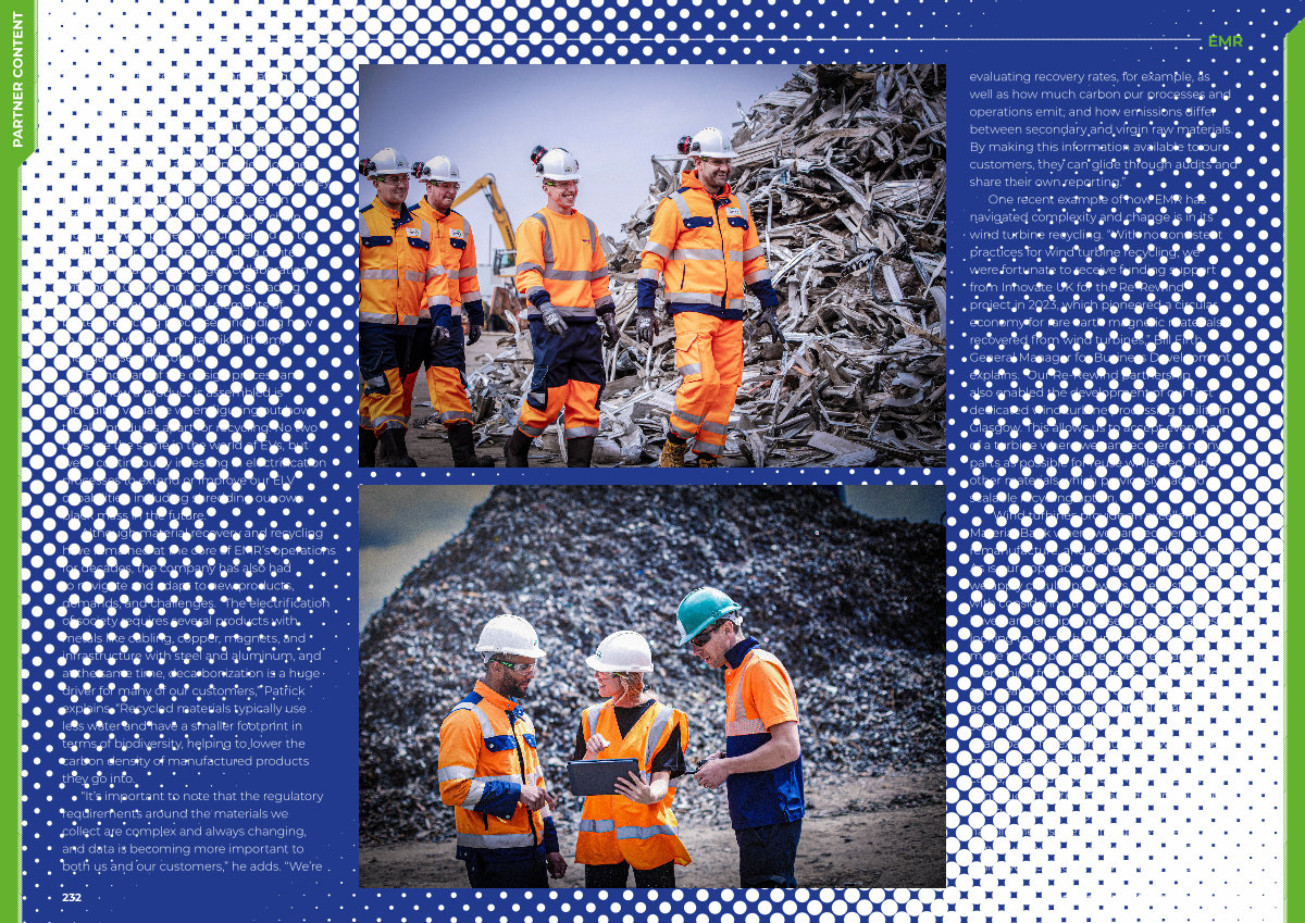 One recent example of how EMR has navigated complexity and change is in its wind turbine recycling.“ With no consistent practices for wind turbine recycling, we were fortunate to receive funding support from Innovate UK for the Re-Rewind project in 2023, which pioneered a circular economy for rare earth magnetic materials recovered from wind turbines,” Bill Firth, General Manager for Business Development explains.“ Our Re-Rewind partnership also enabled the development of our first dedicated wind turbine processing facility in Glasgow. This allows us to accept every part of a turbine where we can recover as many parts as possible for reuse whilst recycling other materials which previously had no scalable recycling option.