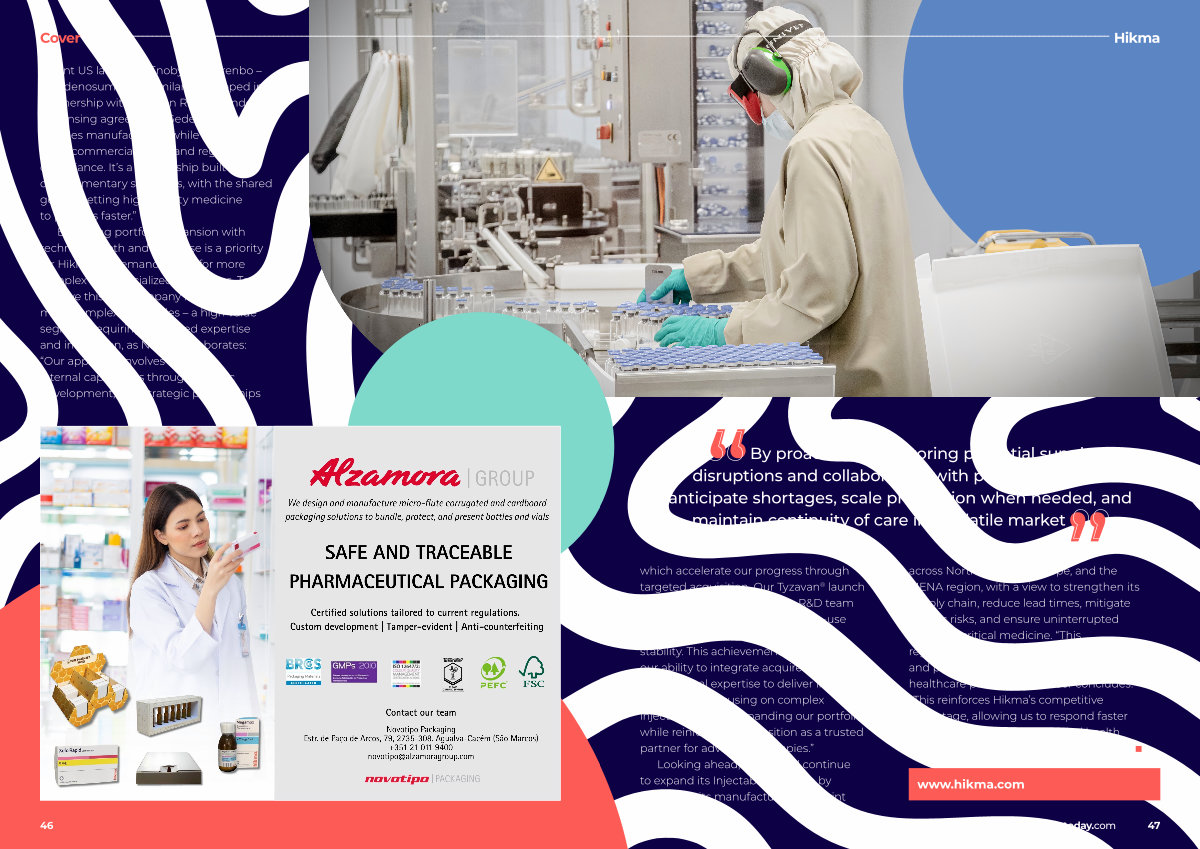 Looking ahead, Hikma will continue to expand its Injectables division by increasing its manufacturing footprint across North America, Europe, and the MENA region, with a view to strengthen its supply chain, reduce lead times, mitigate logistic risks, and ensure uninterrupted access to critical medicine.“ This regionalized model enhances resilience and positions us closer to patients and healthcare providers,” Natheer concludes.“ This reinforces Hikma’ s competitive advantage, allowing us to respond faster to market needs, support global health priorities and deliver sustainable growth.” ■