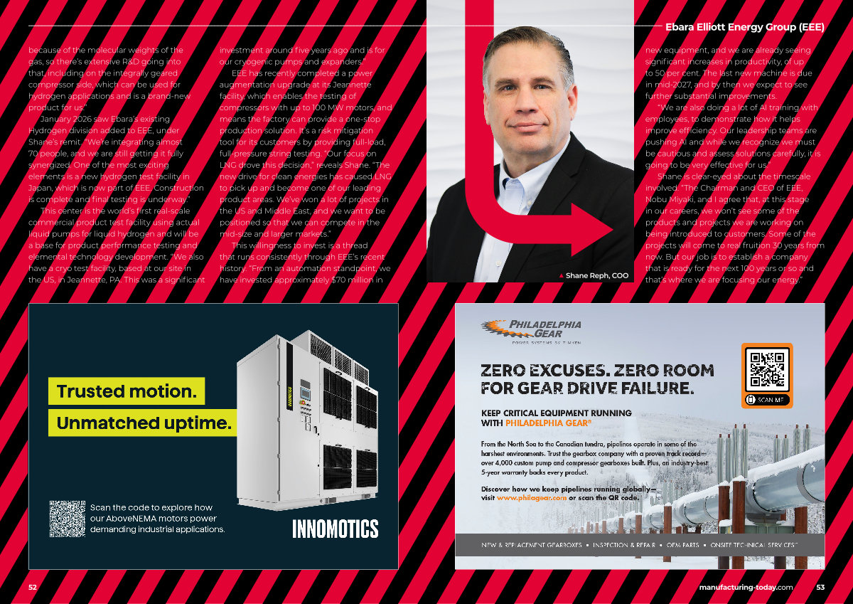 January 2026 saw Ebara’ s existing Hydrogen division added to EEE, under Shane’ s remit.“ We’ re integrating almost 70 people, and we are still getting it fully synergized. One of the most exciting elements is a new hydrogen test facility in Japan, which is now part of EEE. Construction is complete and final testing is underway.”
