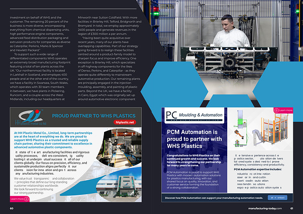 PCM Automation is proud to support WHS Plastics with modern automation solutions for plastics manufacturing, with our shared focus on quality, innovation, and customer service forming the foundation of a strong collaboration.