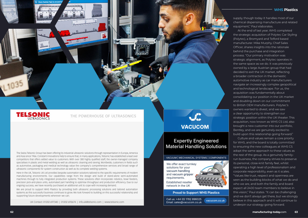 At the end of last year, WHS completed the strategic acquisition of Polytec Car Styling( Polytec), a Bromyard and Telford based manufacturer. Mike Murphy, Chief Sales Officer, shares insights into the rationale behind the purchase and integration process.“ Our primary motivation was strategic alignment, as Polytec operates in the same space as we do. It was previously owned by a large Austrian group that had decided to exit the UK market, reflecting a broader contraction in the domestic automotive industry as car manufacturers navigate an increasingly complex geopolitical and technological landscape. For us, the acquisition was fundamentally about consolidating our position in the UK market and doubling down on our commitment to British OEM manufacturers. Polytec’ s owners wanted to divest, and we saw a clear opportunity to strengthen our strategic position within the UK theater. This acquisition, now known as WHS CS Ltd, also brought a new customer into our portfolio, Bentley, and we are genuinely excited to build upon this relationship going forward.”