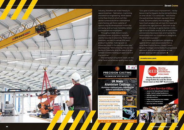 For a crane manufacturer competing against billion-euro corporations from a rural Peak District factory, Street Crane’ s 80-year heritage substantiates its progressive approach and refreshing outlook of‘ real people dealing with real people.’ ■