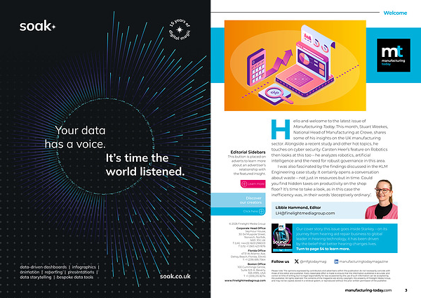 Hello and welcome to the latest issue of Manufacturing Today. This month, Stuart Weekes, National Head of Manufacturing at Crowe, shares some of his insights on the UK manufacturing sector. Alongside a recent study and other hot topics, he touches on cyber security. Carsten Heer’ s feature on Robotics then looks at this too – he analyzes robotics, artificial intelligence and the need for robust governance in this area.